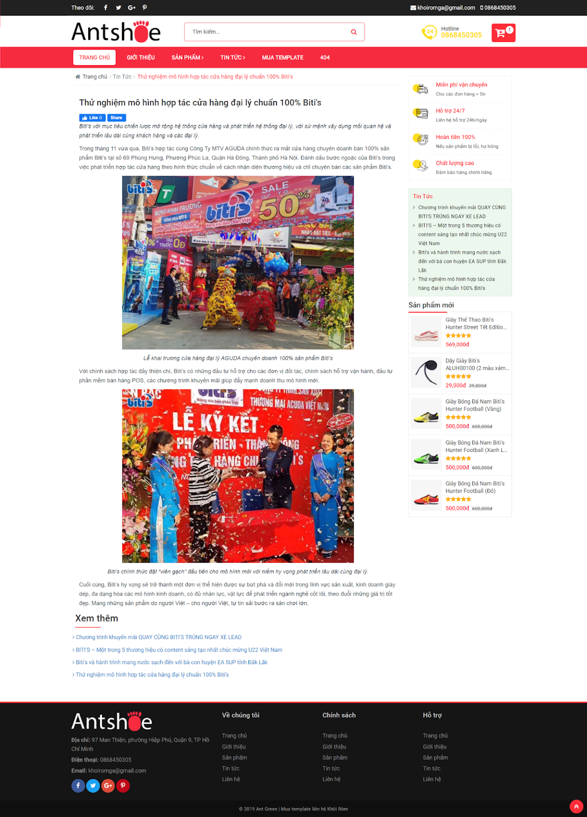 Ant Shoe sử dụng bố cục trang chủ 1 cột, với các widget sản phẩm dạng slide. Thiết kế dạng slide sẽ giúp website trở nên chuyên nghiệp hơn.