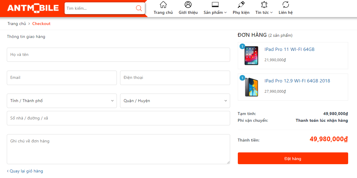 Giao diện website Ant Mobile được thiết kế cho cửa hàng kinh doanh điện thoại, siêu thị mini, hàng công nghệ. Thích hợp cho cửa hàng bán đồ công nghệ online.